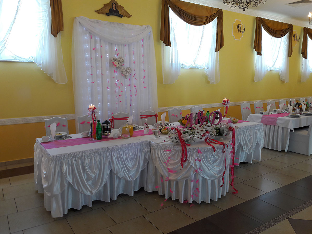 Zajmujemy się organizacją różnorakich przyjęć, takich jak komunie, chrzty, wesela, urodziny i inne. Naszą pasją i pracą jest sprawianie, by klienci oraz ich goście byli oczarowani i bawili się jak najlepiej. Chętnie współpracujemy i bierzemy pod uwagę różne indywidualne prośby, zarówno w kwestii wystroju jak i menu, by zorganizowane przyjęcie jak najbardziej odpowiadało gustowi klientów. Oprócz dwóch pojemnych i komfortowych sal oferujemy także pokoje sypialne, atrakcje dla dzieci oraz co najważniejsze - nasze doświadczenie, umiejętności i wielkie zaangażowanie.